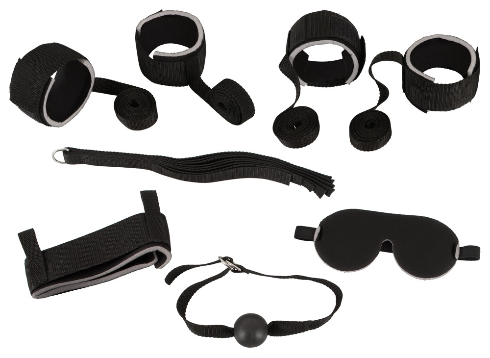 Inklusive ist ein 8-teiliges Set für abwechslungsreiche Bondage-Spiele mit: