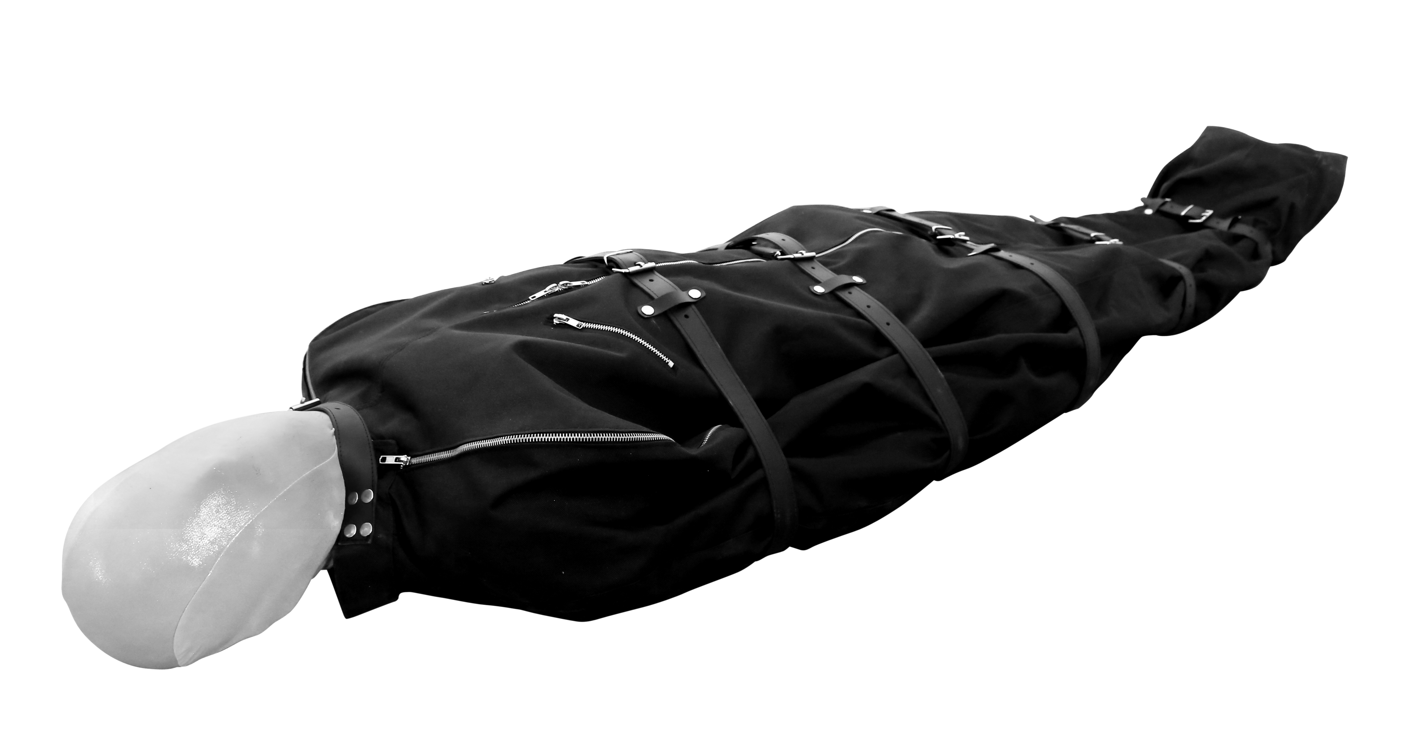 Body Bag aus stabilem und reissfestem PE Material und 5 Leder Gurten