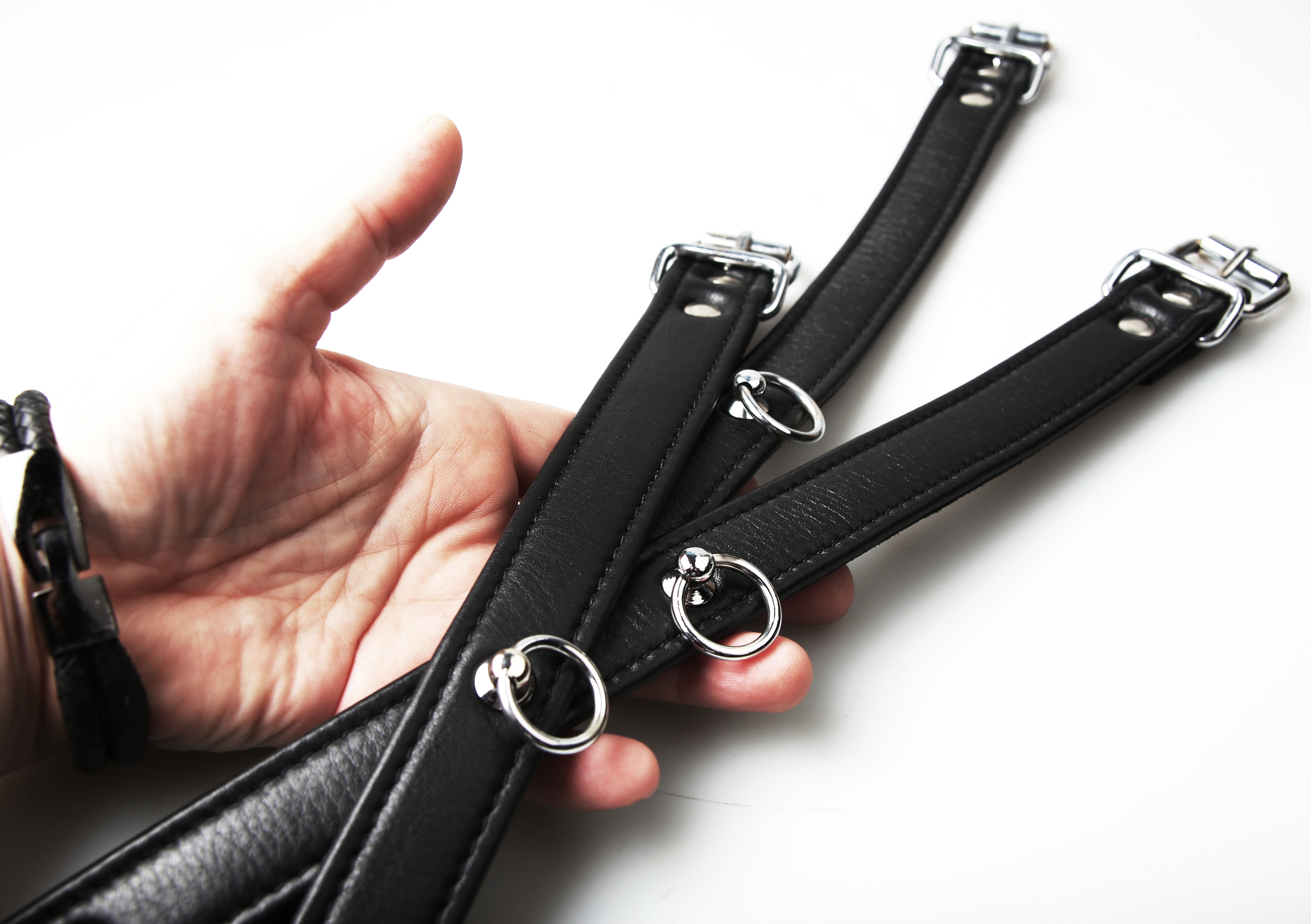 Lederhalsband mit Lederverbindung und Handfesseln