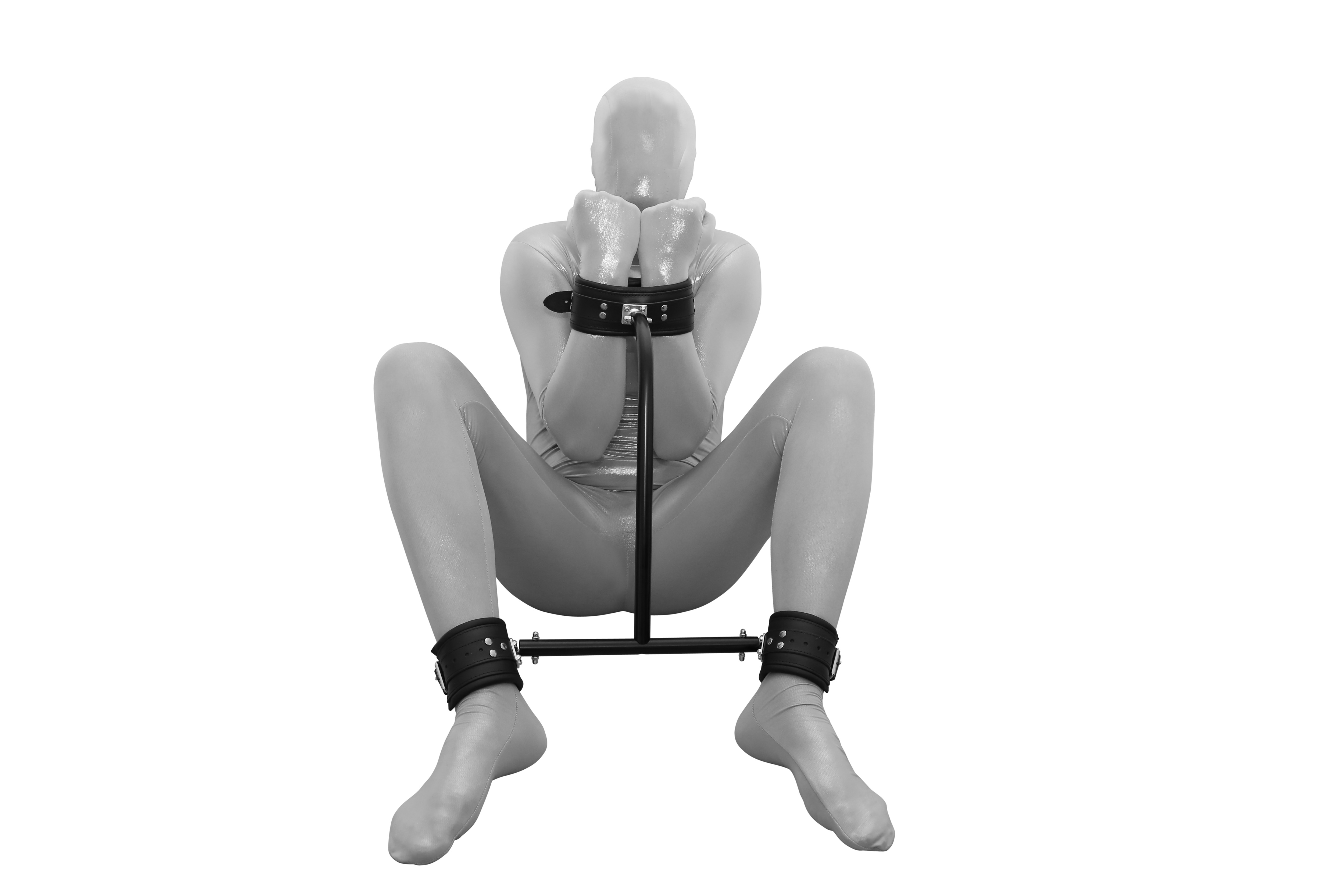 Leder Handfesseln mit Ketten und Nackenstütze