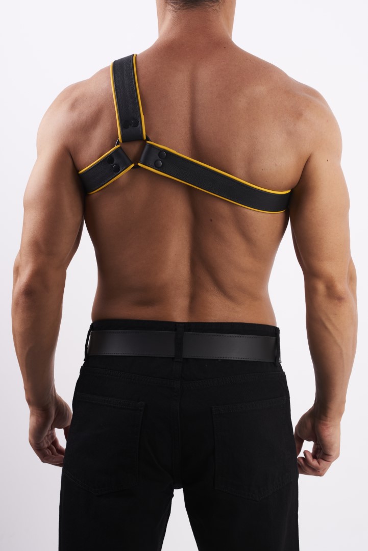 HighQuality - Soft Leder Brust Harness Y Schwarz/Gelb