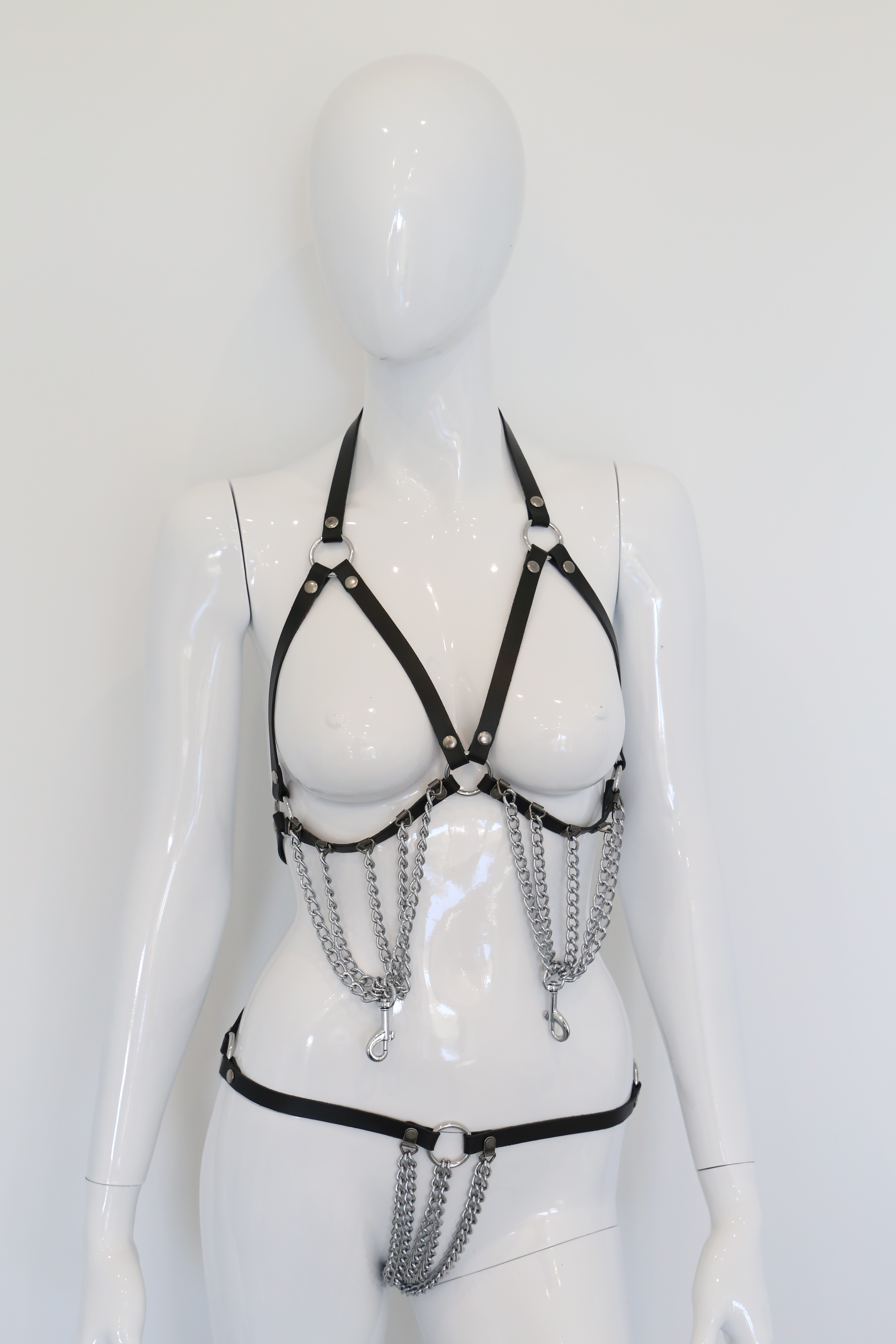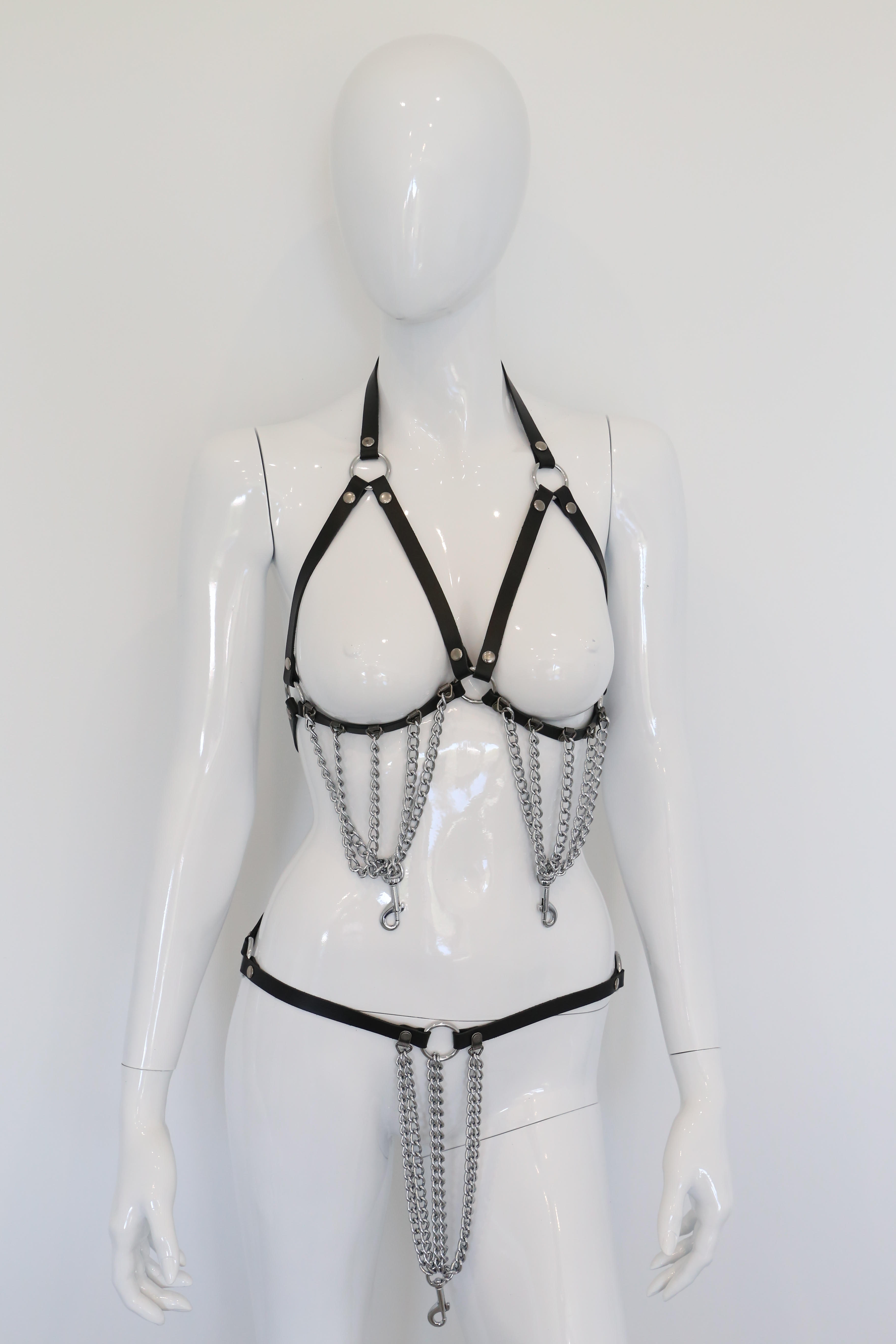 Ketten BH und String aus robustem Leder mit Ketten