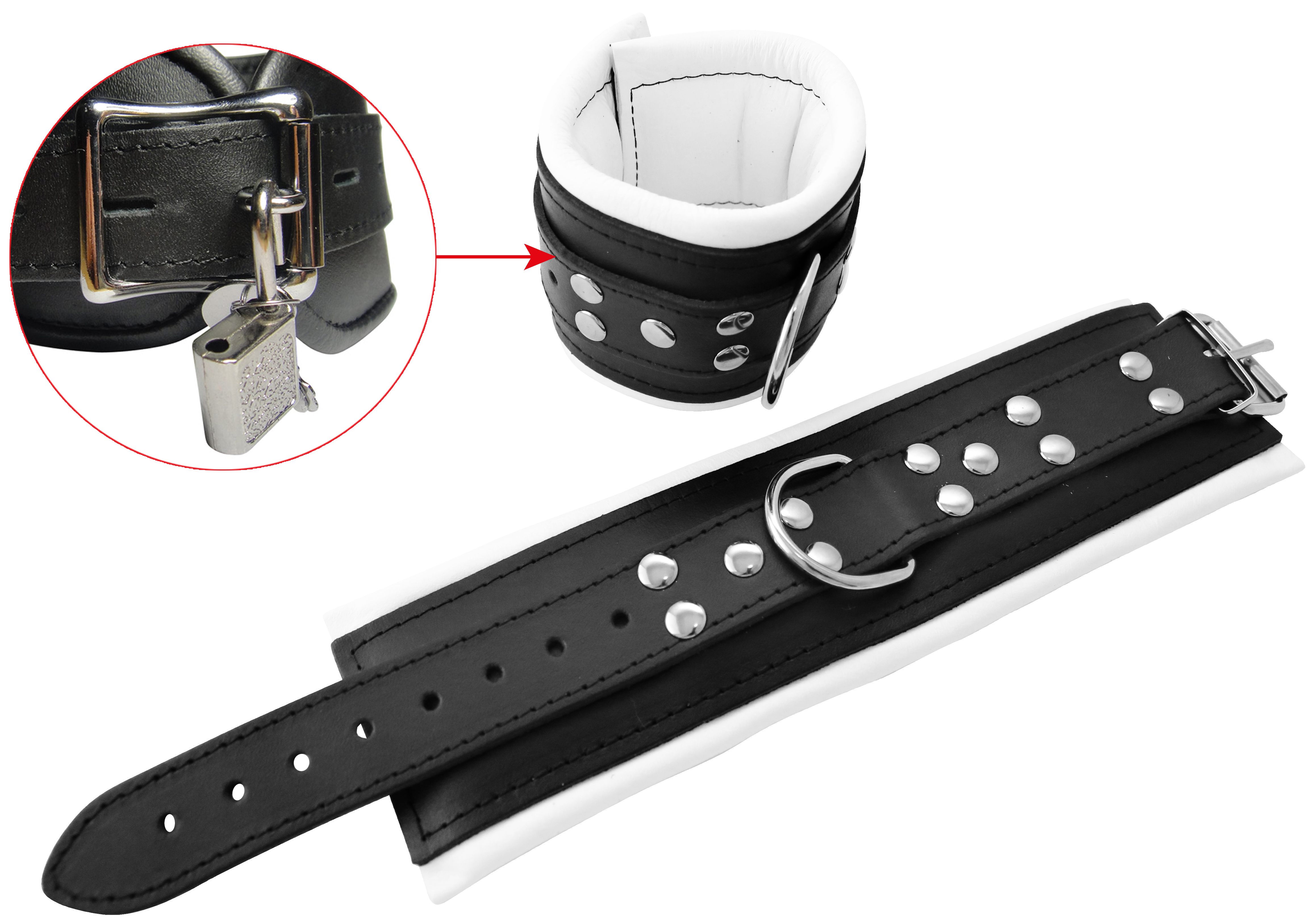 Leder Handfessel weiß ca. 8 cm breit gepolstert abschließbar.