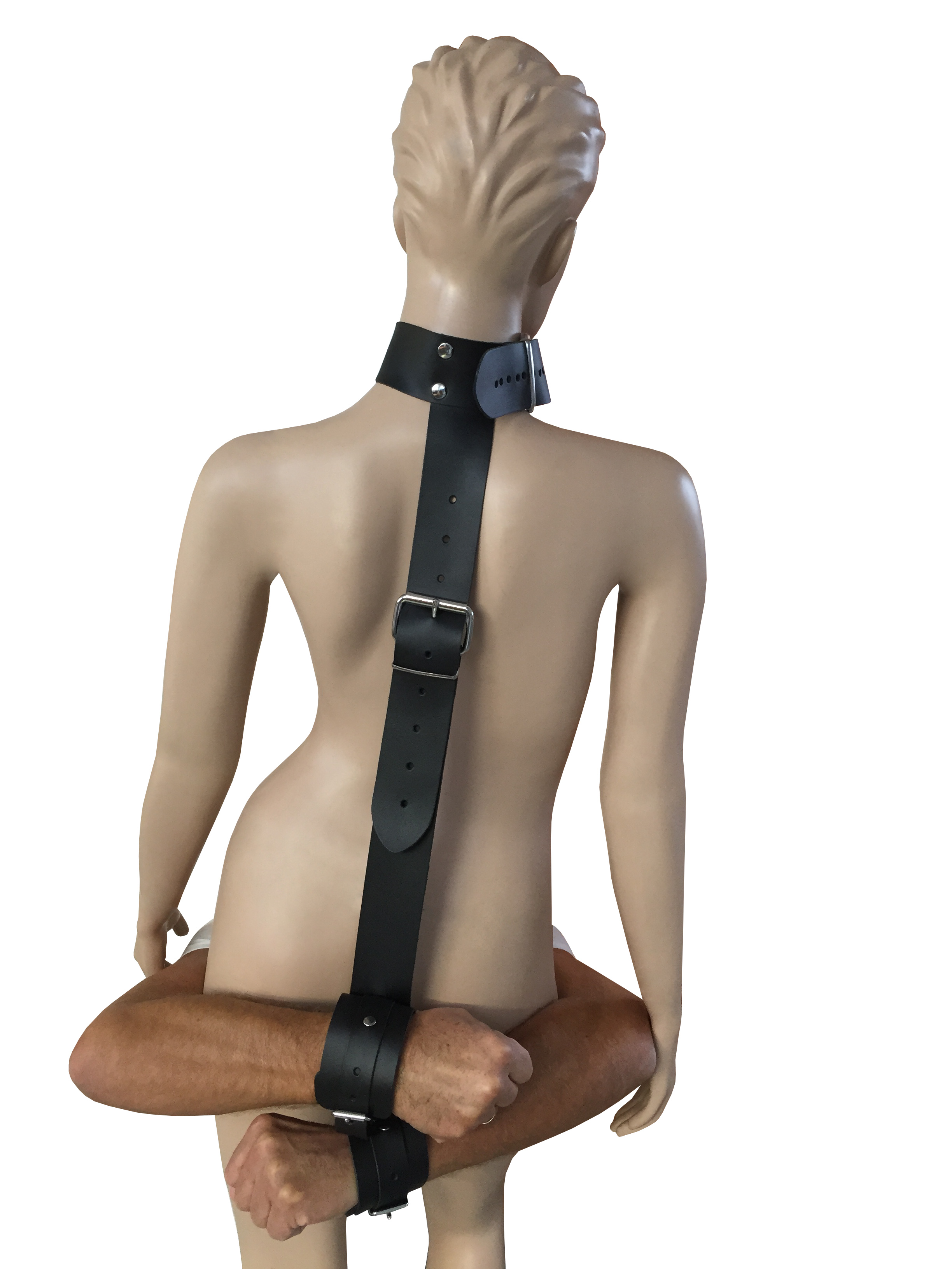 Lederhalsband mit Lederverbindung und Handfesseln