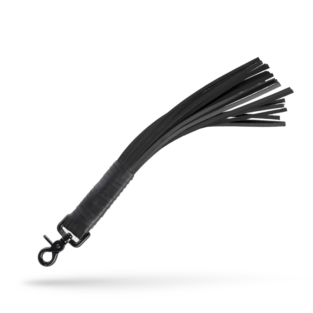 Die kurzen und gleichzeitig harten Lederriemen sind um einen schwarzen Karabiner gewickelt, sodass Du Deine Peitsche jederzeit beim Tragen auf der Straße, der Party oder zu Hause verwenden kannst.