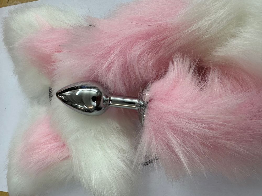 Der glatte Metall-Plug kontrastiert perfekt mit dem flauschigen weiß-rosa Plüschschwanz (ca. 35 cm lang) und sorgt für ein rundum stimmiges Erscheinungsbild.