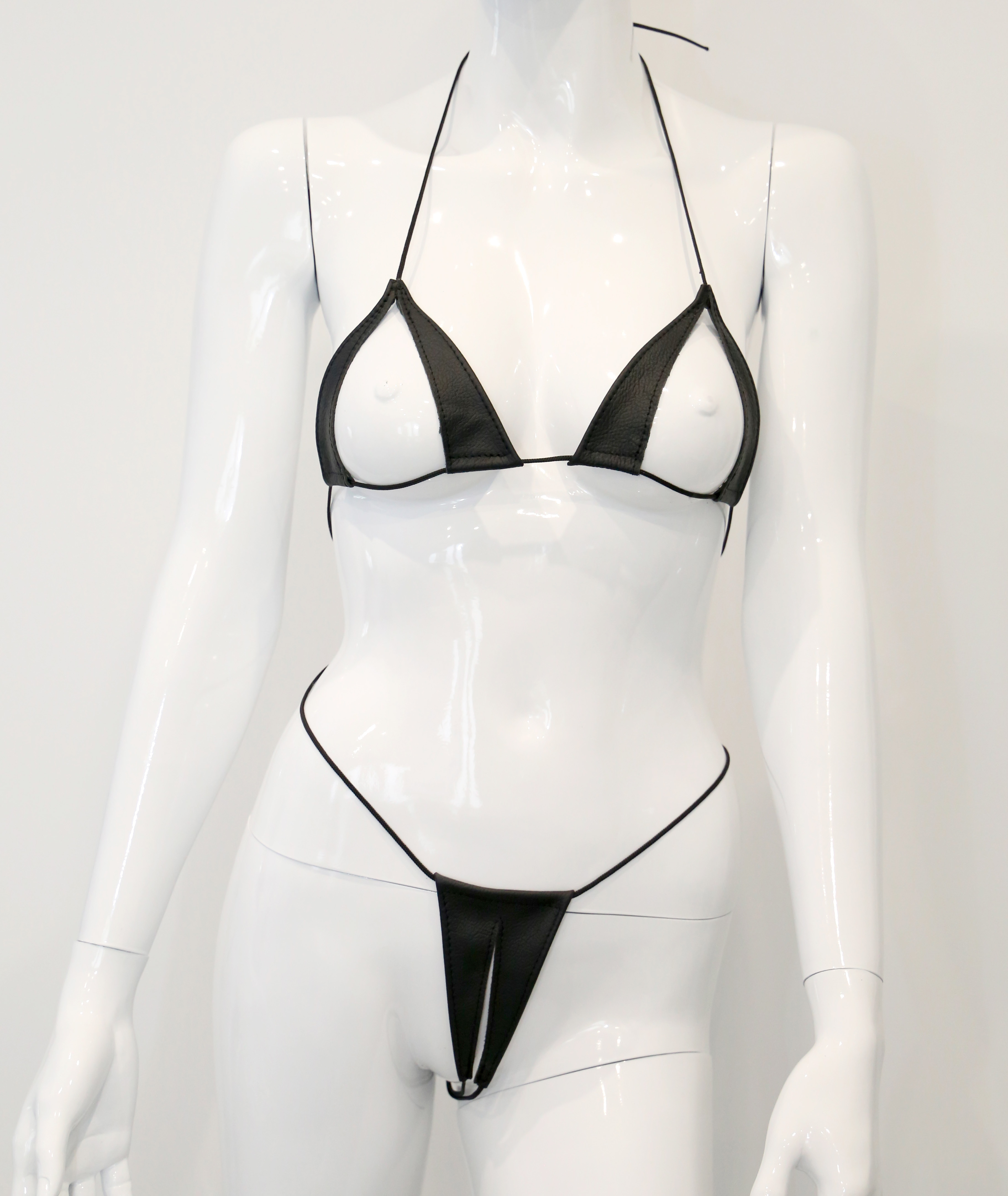 Bikini mit Schlitzen aus weichem Leder