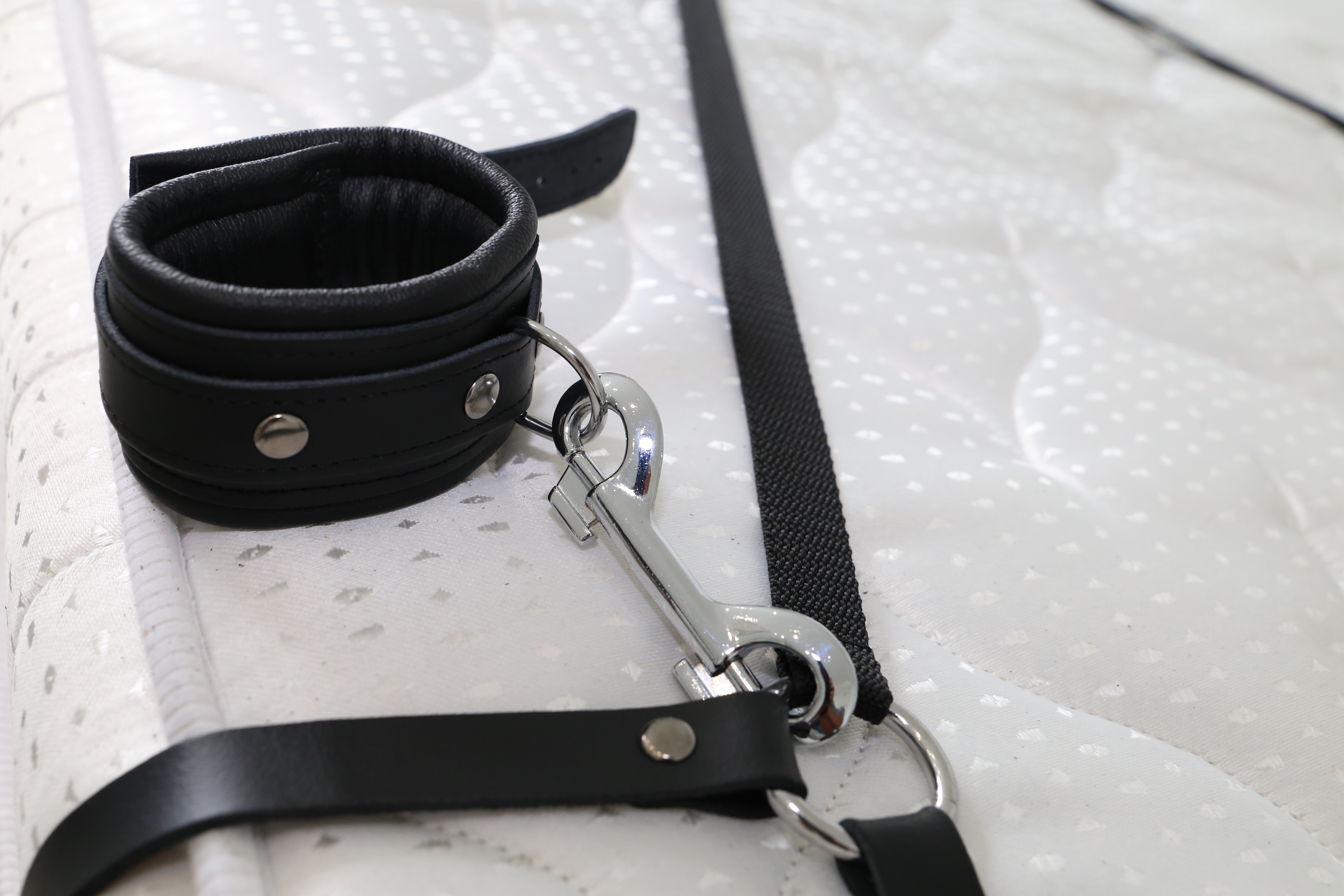 Bettfessel Set mit Leder-Fesseln, weich gepolstert.