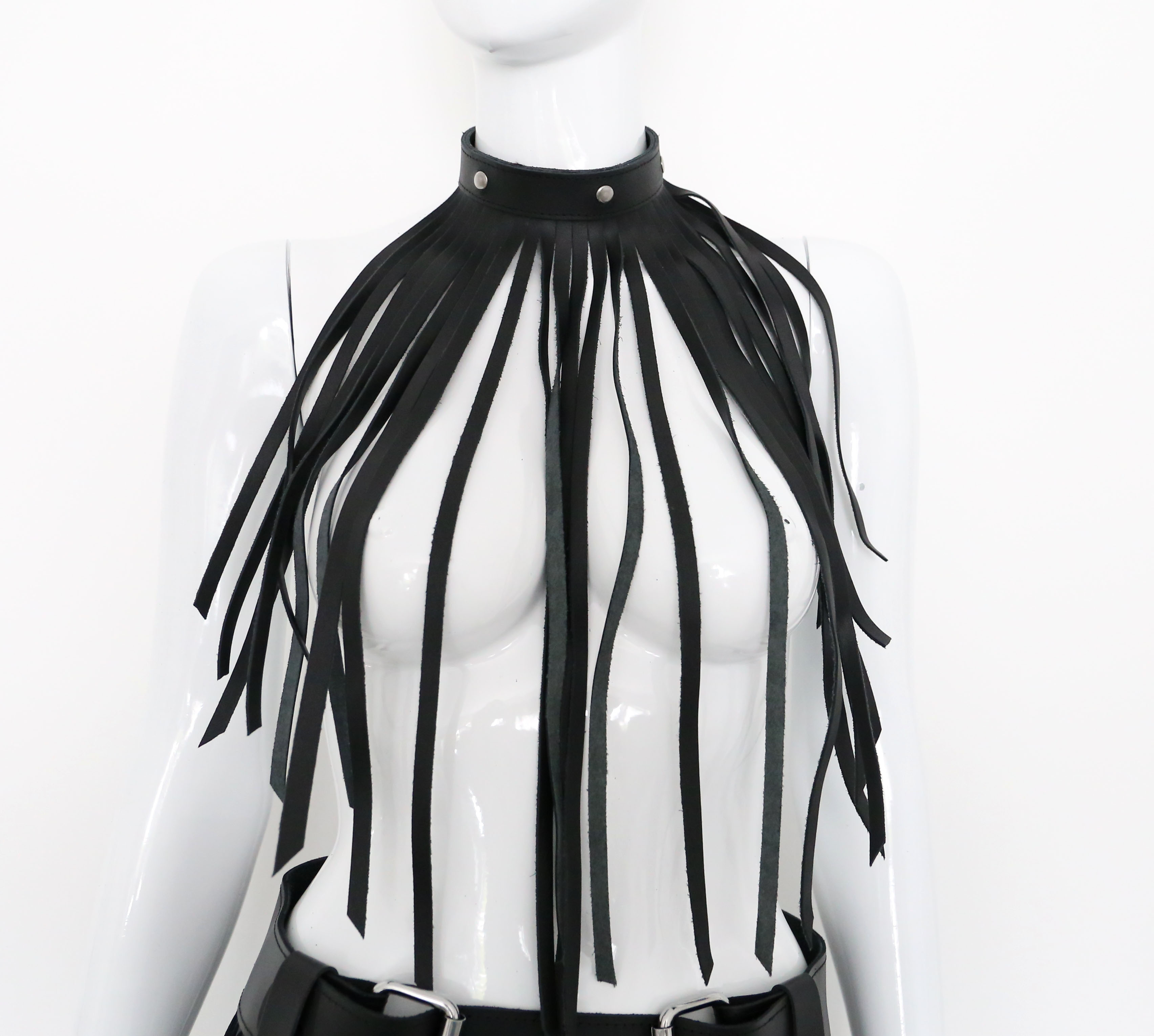 Halsfessel aus Leder mit Leder Fransen