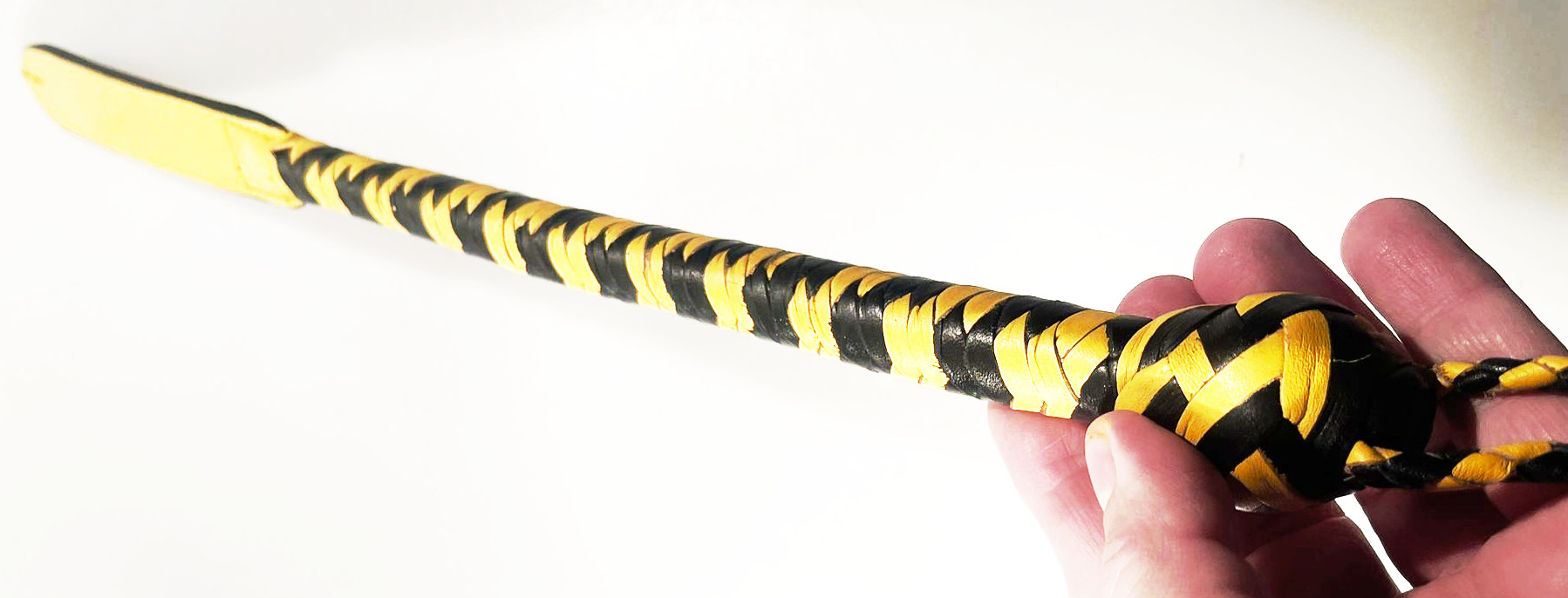 Produktinformationen "Kurzer Kantschu - Hochwertige Lederpeitsche mit Klatsche 47cm Black-Yellow"