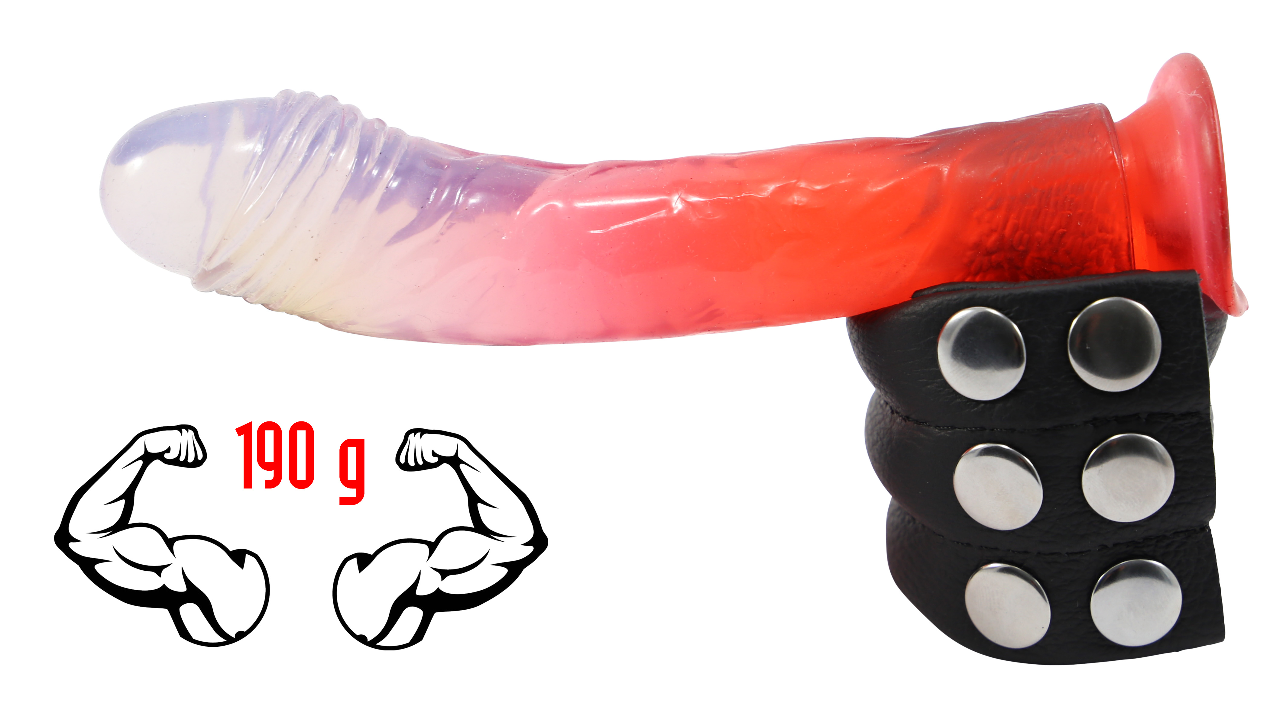 Kann am Penis oder Hoden befestigt werden und ist mittels Druckknöpfen verstellbar (von Ø ca. 30 mm - Ø ca. 40 mm)