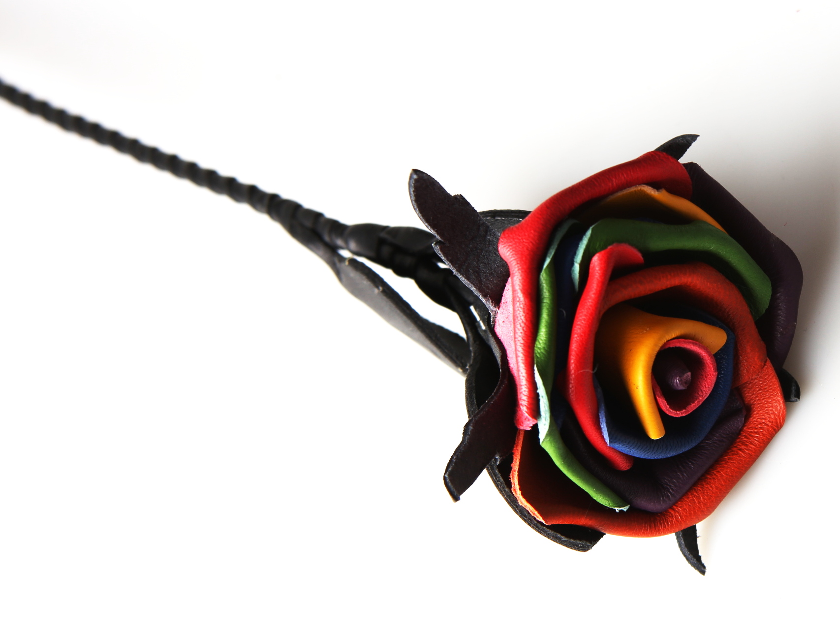 Leder Rose - Regenbogen - schwarze Blätter