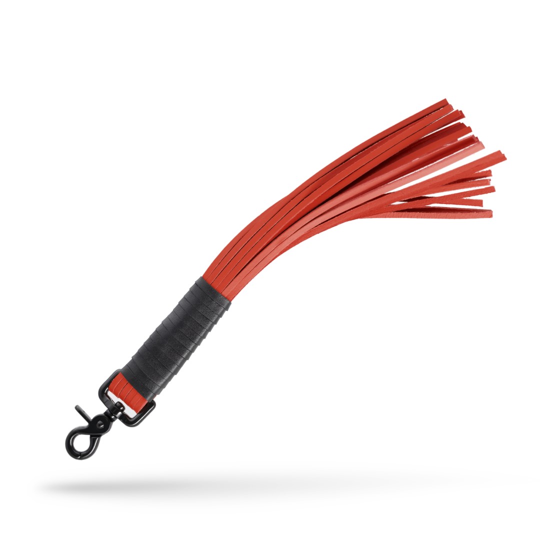 Die kurzen und gleichzeitig harten Lederriemen sind um einen schwarzen Karabiner gewickelt, sodass Du Deine Peitsche jederzeit beim Tragen auf der Straße, der Party oder zu Hause verwenden kannst.