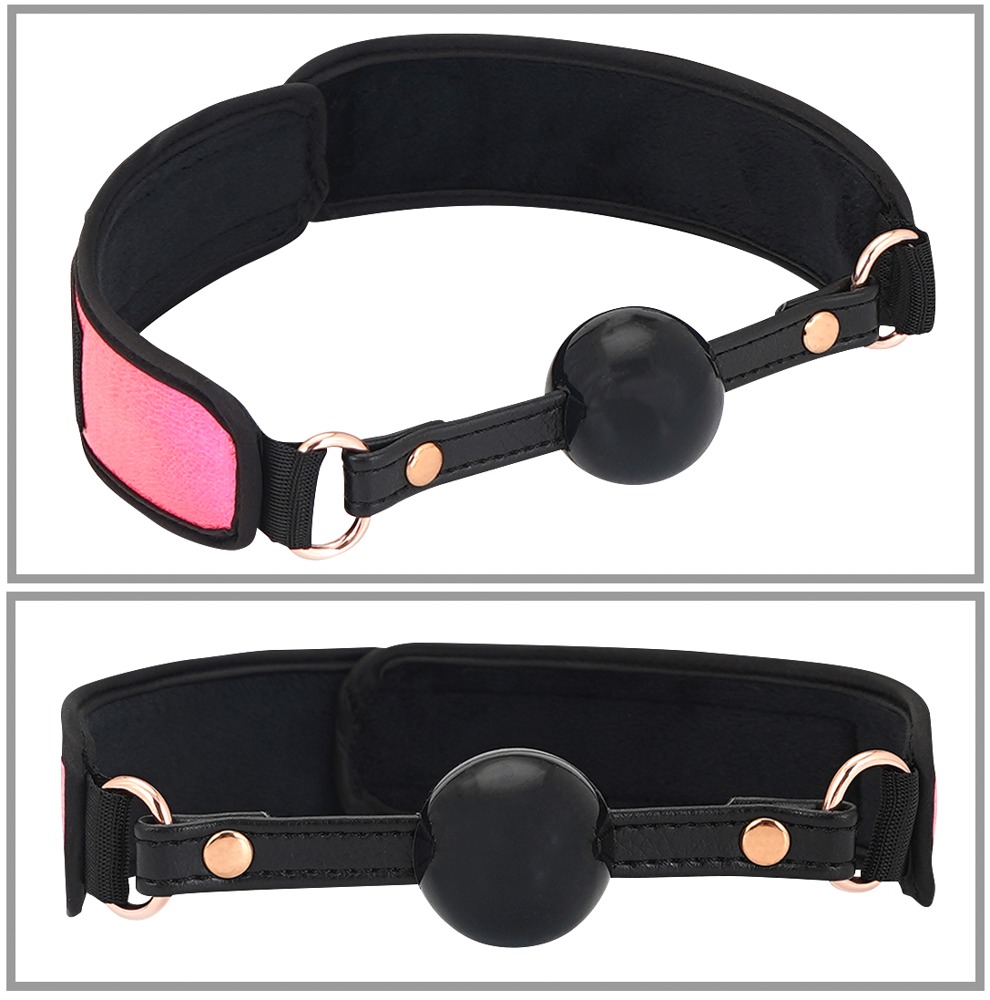 - 1 x Ballknebel Ø 3,3 cm, Kopfgurt 4 cm breit, 52 cm lang (verstellbar).